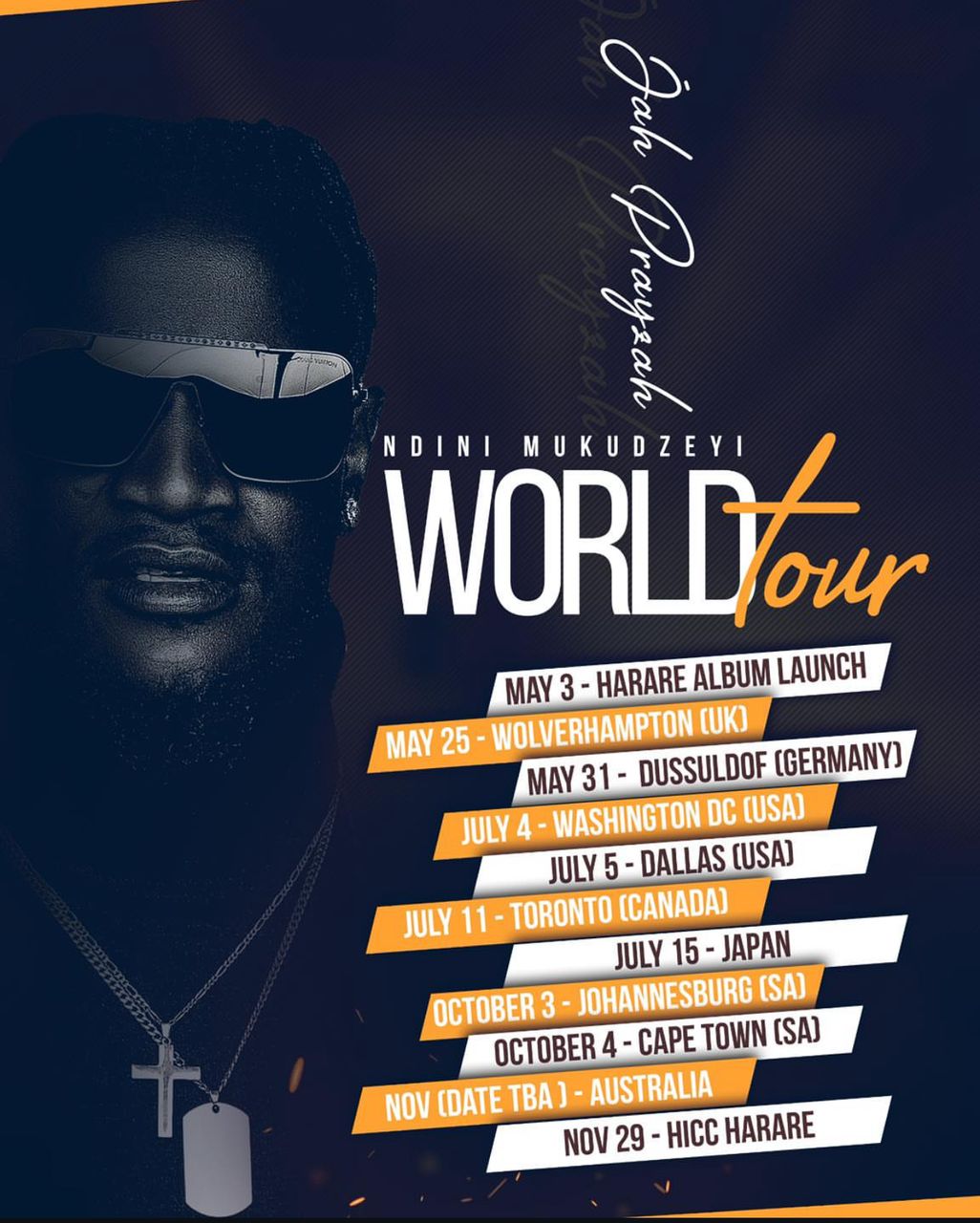 Get ready for an unforgettable musical journey with Jah Prayzah's 'Ndini Mukudzei World Tour'! Starting in May and running through to November, this tour spans the globe, bringing the unique and mesmerizing sounds of Jah Prayzah to fans in cities like Harare, Wolverhampton, Dusseldorf, Washington DC, Dallas, Toronto, Japan, Johannesburg, Cape Town, and Australia (date TBA). Don't miss the opportunity to experience the energy and passion of one of Africa's most dynamic performers live on stage. Secure your tickets now and be part of this international celebration of music and culture!